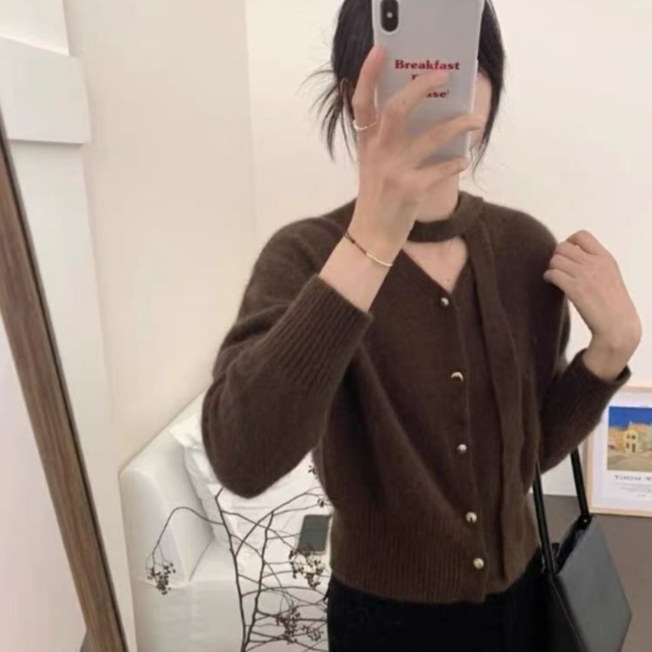 ホルターストリーマー付きニットカーディガン