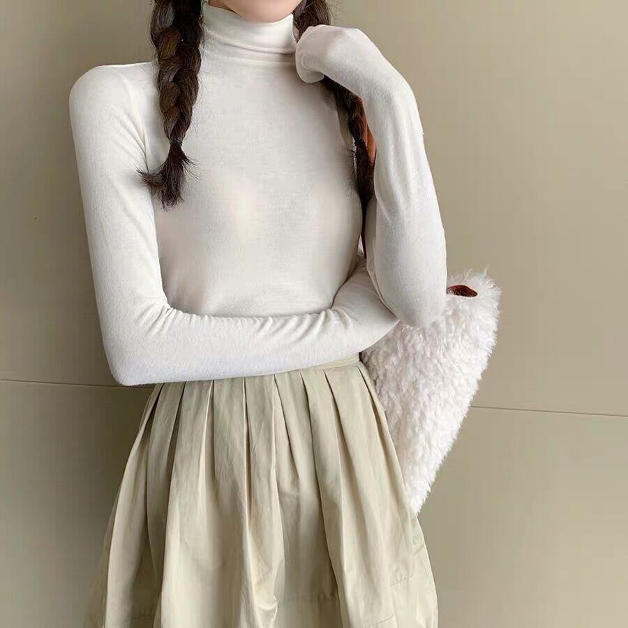 秋冬のレイヤードに欠かせない、ハイネックのスリムトップス。