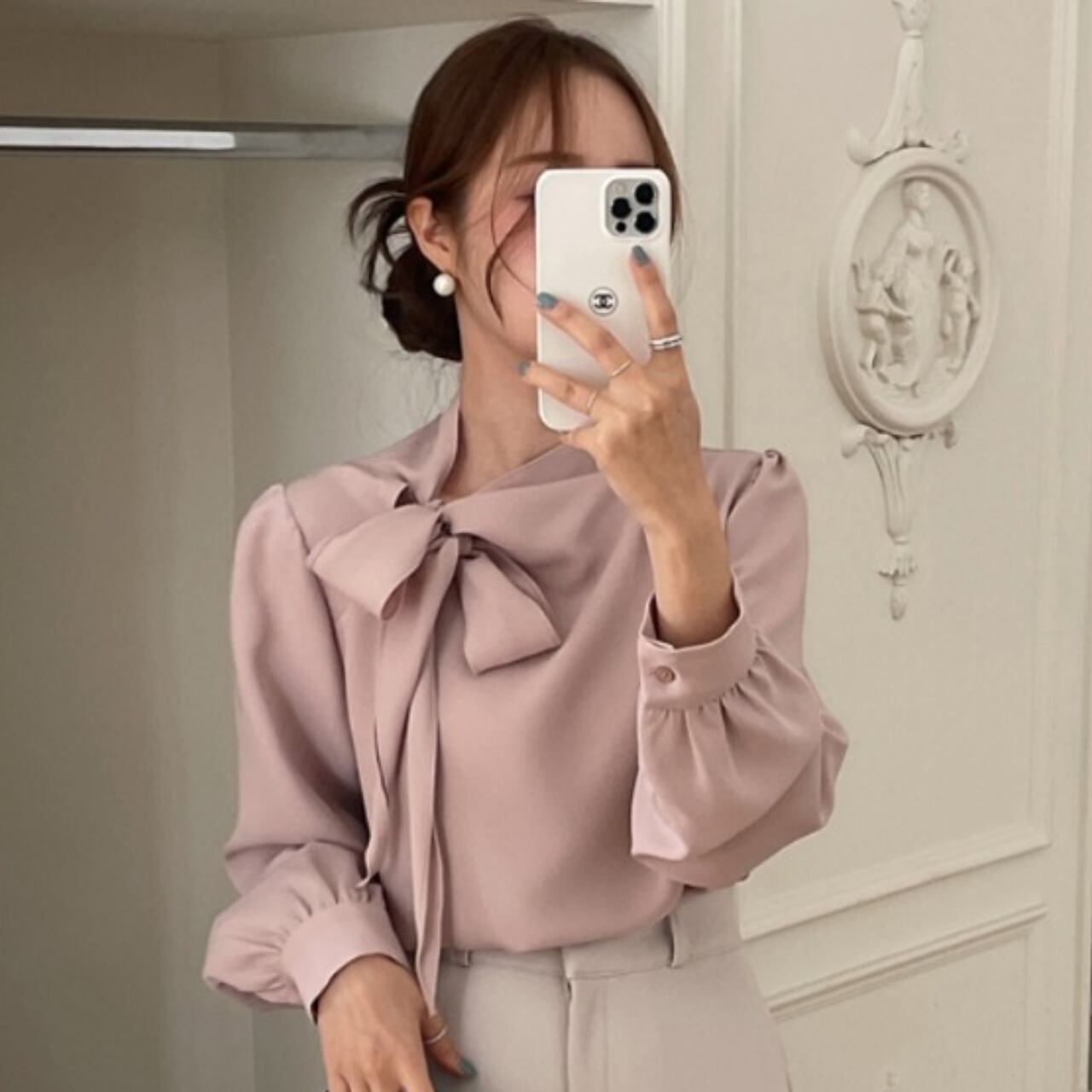 デザインフレンチボウタイブラウス