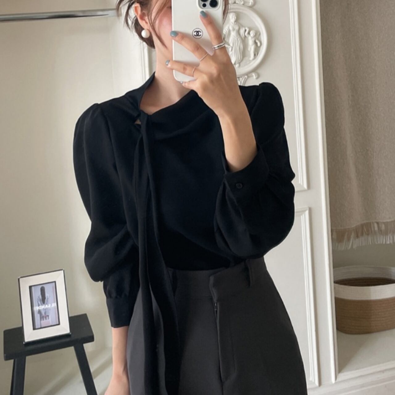 デザインフレンチボウタイブラウス【P0027】